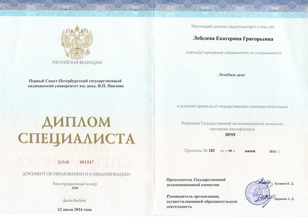Первый Санкт-Петербургский государственный медицинский университет им. акад. И.П. Павлова (Лечебное дело)